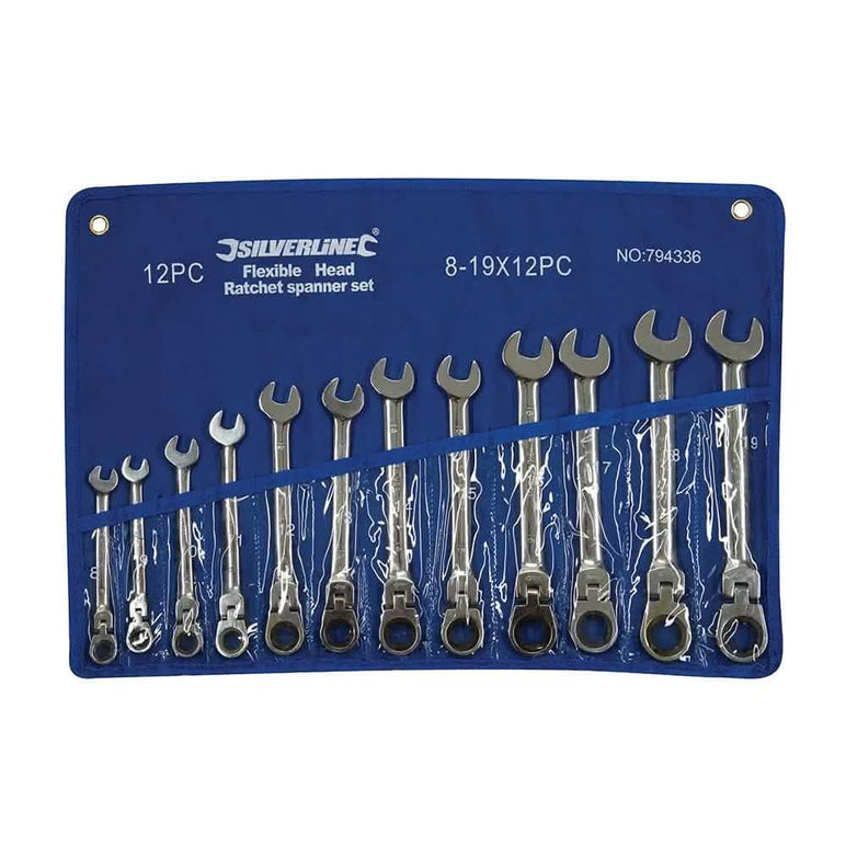 - Flexible Head Ratchet Spanner Set 12pce