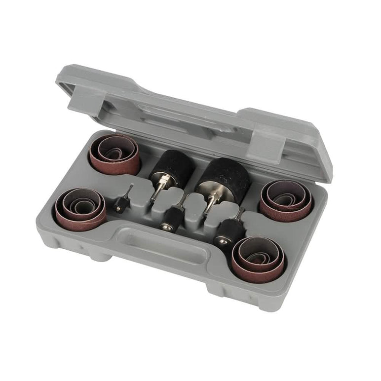 - 20 sanding sleeves supplied (4 of each size), rubber drum spindles (1 of each size)