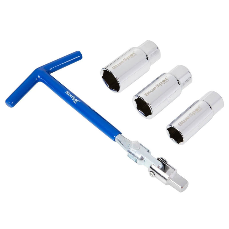 The set contains a T-Handle Flexi Wrench which is perfect for getting into tight spaces, which also has a soft grip to aid user comfort and 3 of the most popular sizes of spark plug sockets all with internal rubber retention rings to prevent damage to the spark plug.