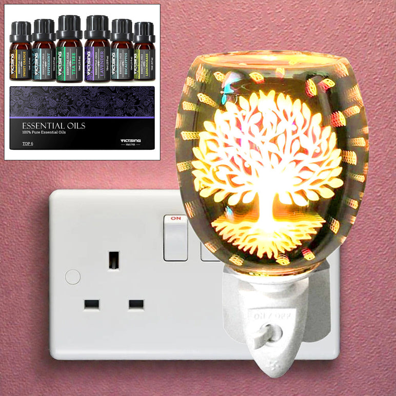 Tree of Life Oil Burner and Wax Warmer plus Pack of 6 Essential Oils