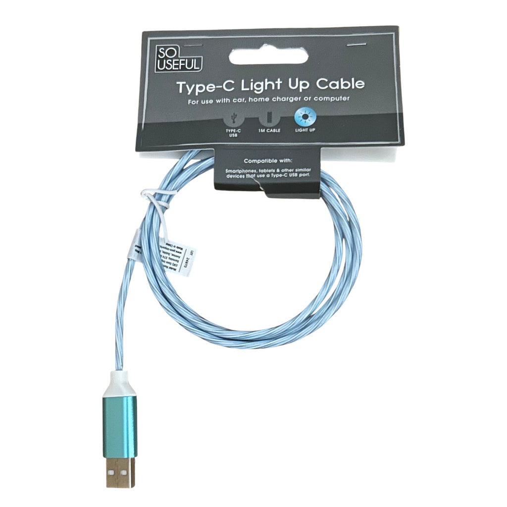 USB Type-C Fast Charging Cable – 1m with Blue LED Light