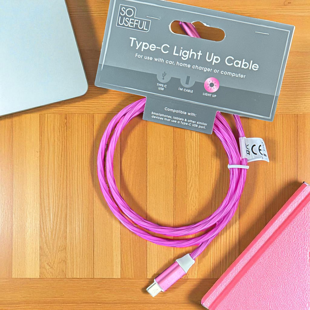 Charge in style with this 1-metre Type-C USB cable, designed for fast performance and a stunning pink glow. Perfect for night-time use, gaming setups, or anyone who loves a touch of colour, this cable combines practicality with personality.