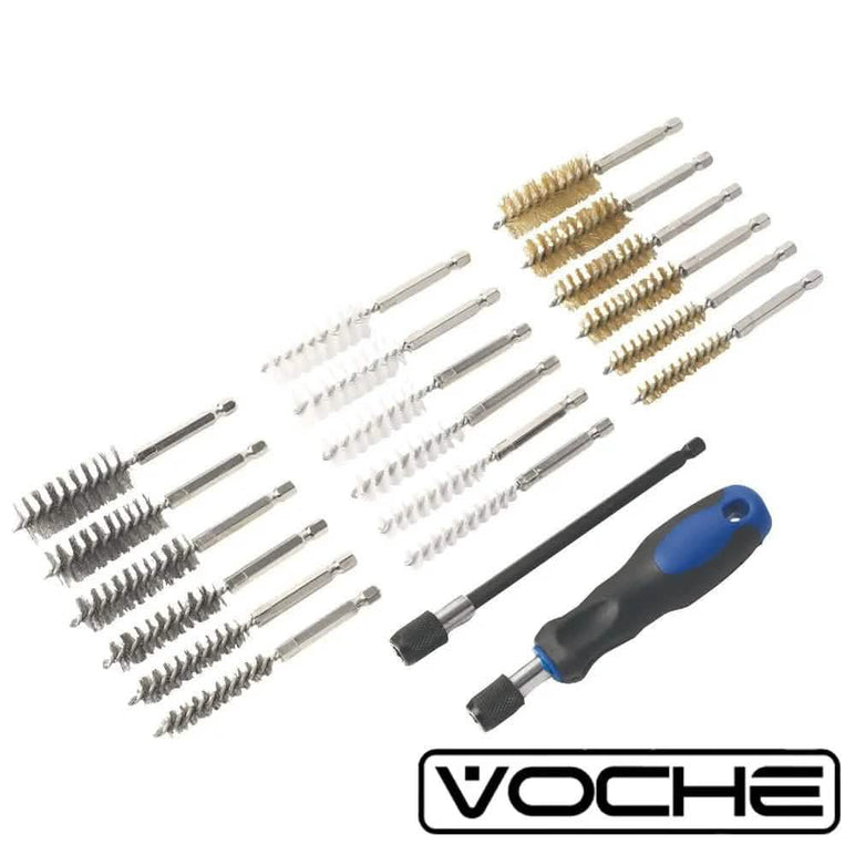 Suitable for numerous uses including removing carbon cleaning from internal threads or pipes and cleaning drilled holes