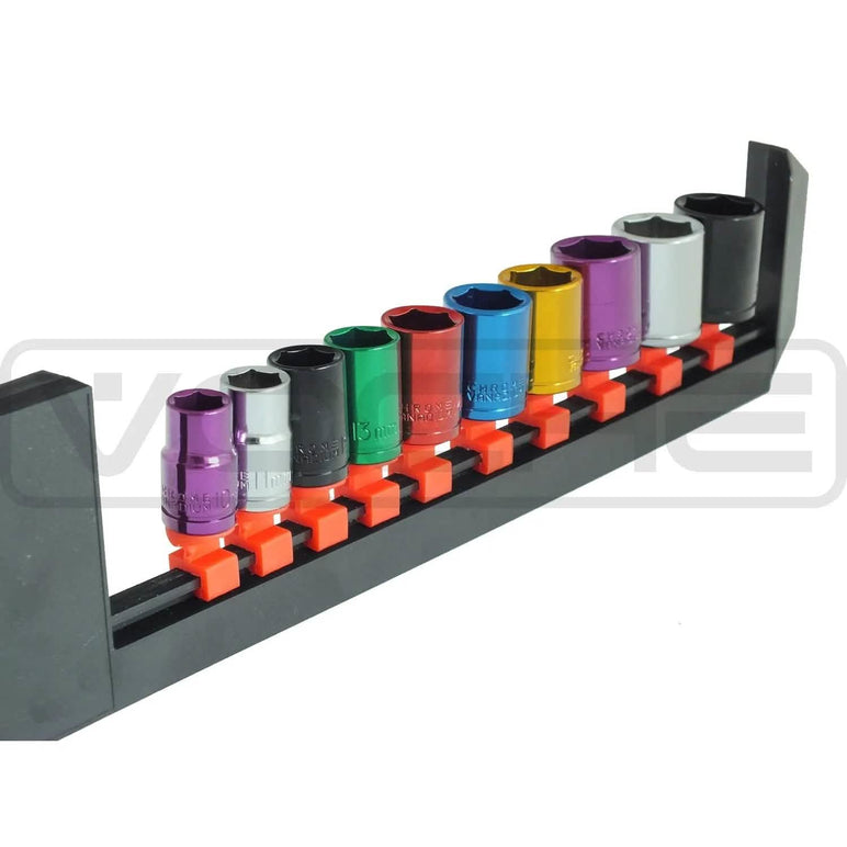 Voche® Pro 10 Piece 3/8" Shallow Drive Coloured Socket Set With Storage Rail