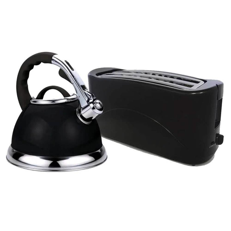 This 3.5 Litre Voche Metallic Black Stainless Steel Whistling Kettle and 4 Slice Toaster Set will add a touch of class to any kitchen.