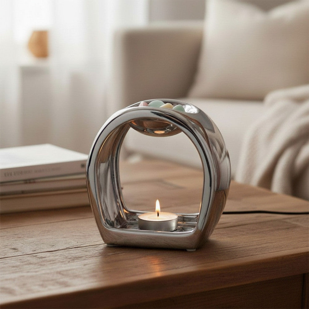 Indulge in the ritual of self-care or share the joy of these tea light holders with friends and family. Elevate your space and make every moment special with the Wax Oil Warmer Tea Light Holder Silver Round Orb. Order now to experience the perfect blend of style, functionality, and sensory delight.
