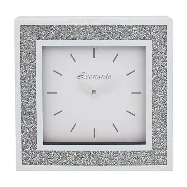 Wall Clock Crystal Diamonte Effect Mirror White Glass Mantel Piece Desk 40cm