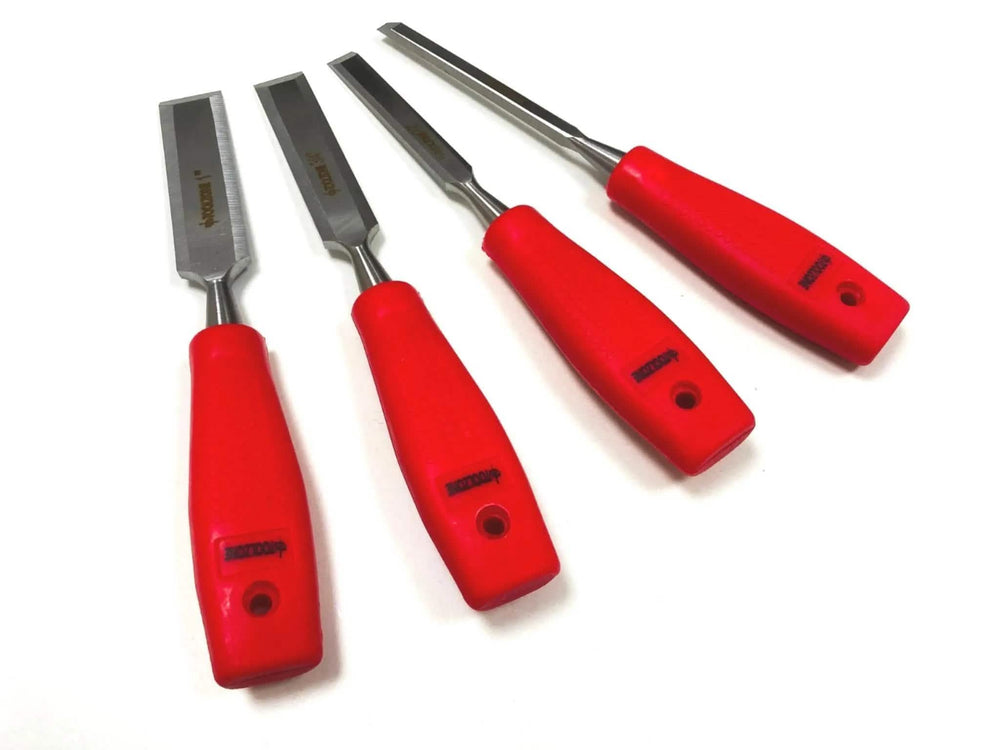 4 Piece Wood Chisel Set with impact-resistant plastic handles